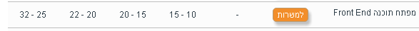 הביקושים למשרות Frontend נמשכים בעליה ניכרת בעיקר למועמדים המתמחים בספריות Javascript. לאחרונה הביקושים עולים בכלל חברות ההייטק בשונה משהיו מקובלים בעבר בעיקר בחברות Start Up. הסיבה המרכזית לעליית הביקושים היא בשל הצורך במעברים בין פלטפורמות Desktop Web ו Mobile.